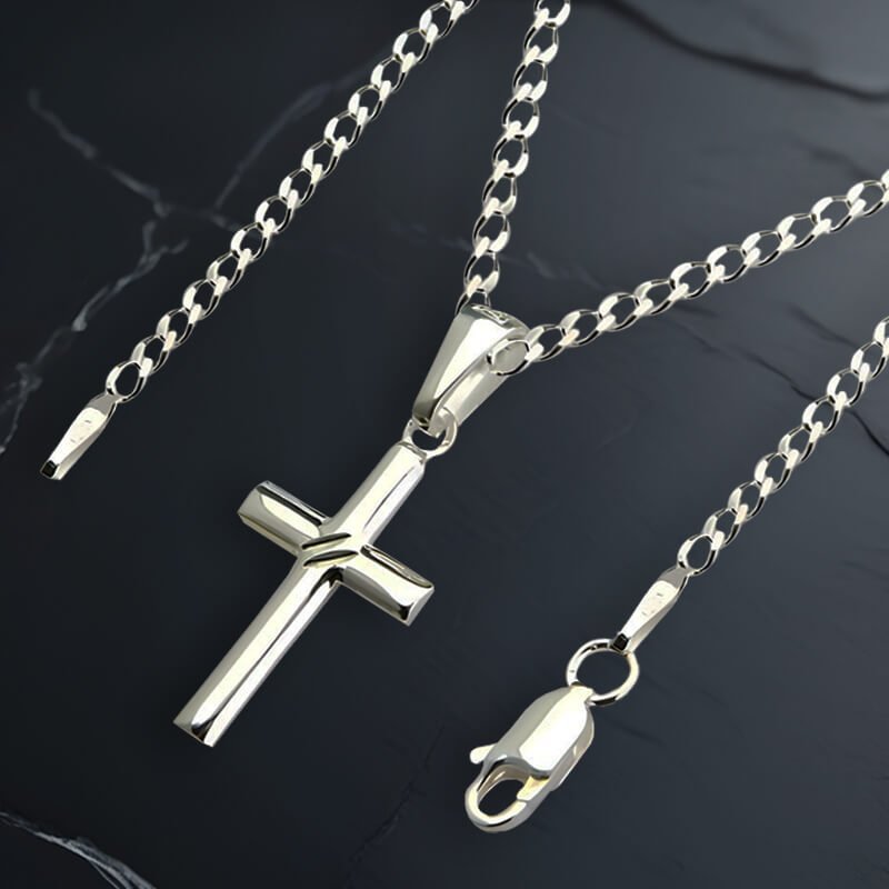 Łańcuszek z Krzyżykiem Srebro 925 długość 55cm splot Pancerka szerokość 2,5mm
